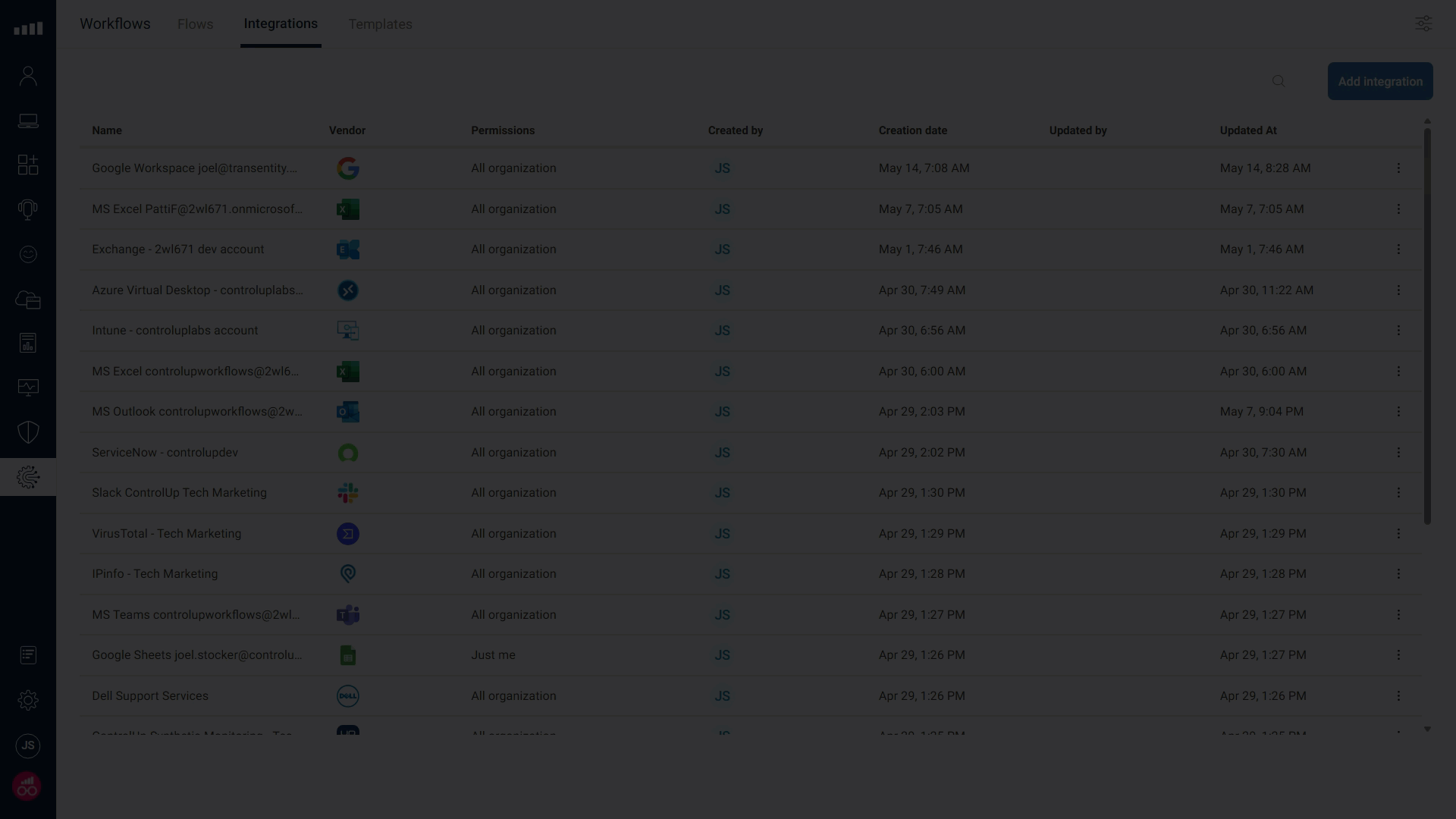 We also added additional security controls when adding integrations that allow for granular control over which ControlUp ONE users can build flows using the added integrations.