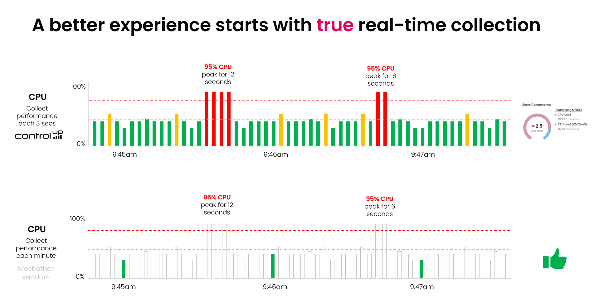 Figure 3 – True real-time collection mattersWith ControlUp you can trust and act on the numbers you see because of our true real-time collection.