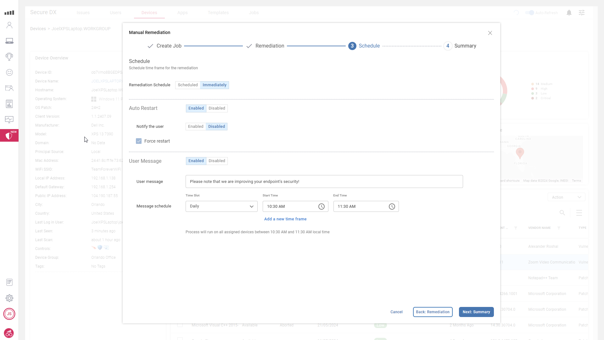 Depending on your scanning and remediation processes, you may occasionally have to manually remediate one or many devices. ControlUp for Compliance now has enhanced capabilities that can be configured as part of a manual scan including the ability to do a reboot as well as to send the user a message on screen to notify them that a remediation is happening or to inform them that the machine will be restarted.