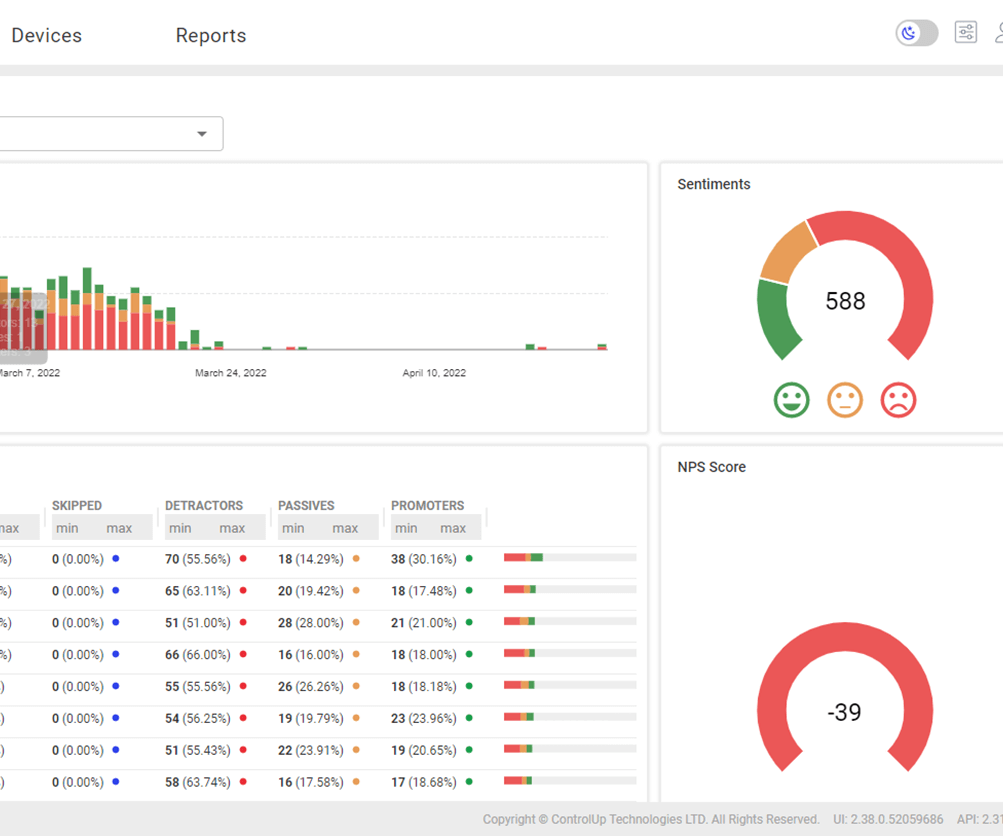 Edge DX employee sentiment surveys provide IT with a user’s perspective of the employee’s digital experience. Custom surveys are delivered to the client’s desktop for beneficial results to assist IT in better support. Surveys can be broken down by job role, region, or other sorting criteria.