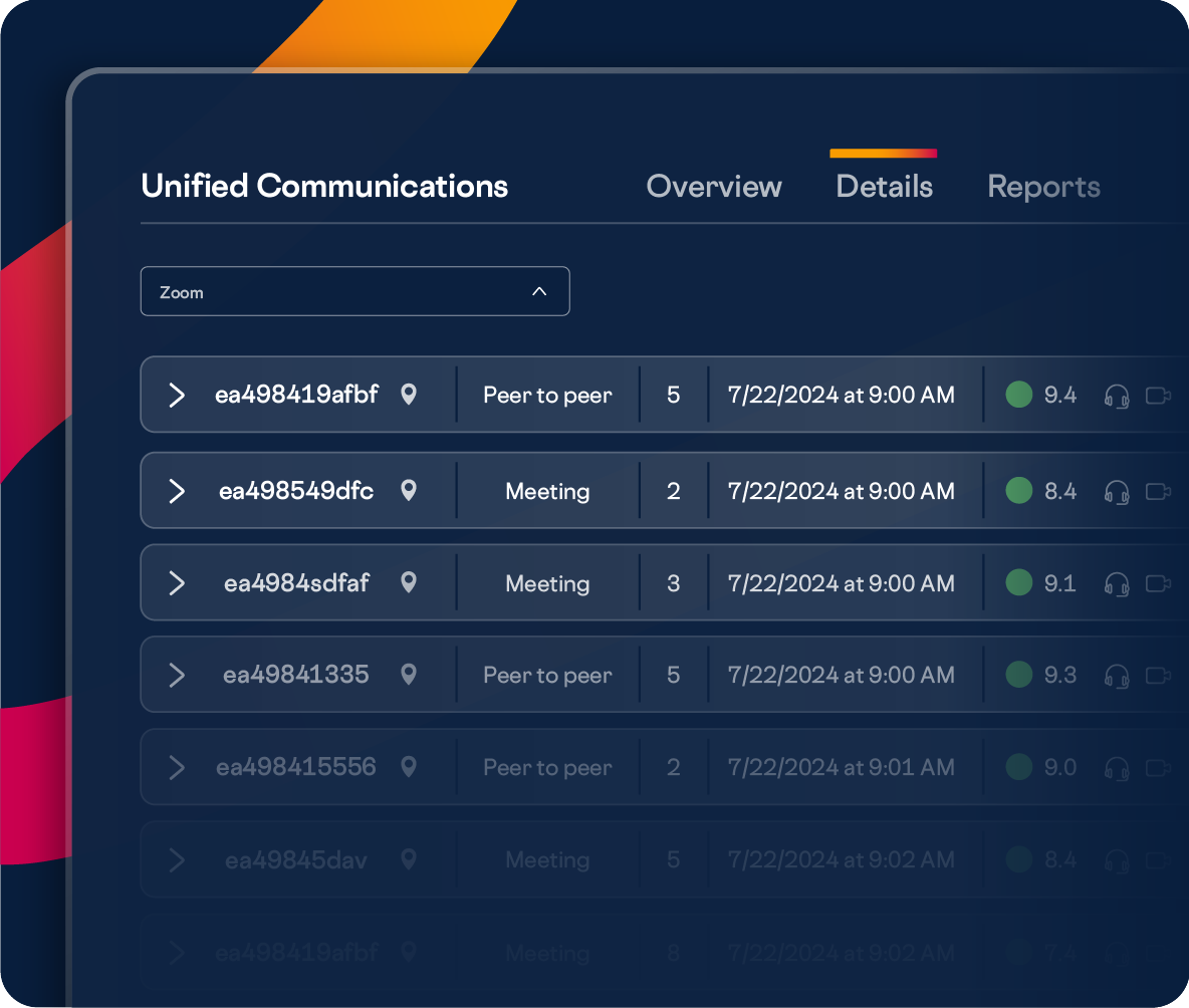 Get performance and experience metrics in real-time while calls and meetings are happening, not after they are over.
