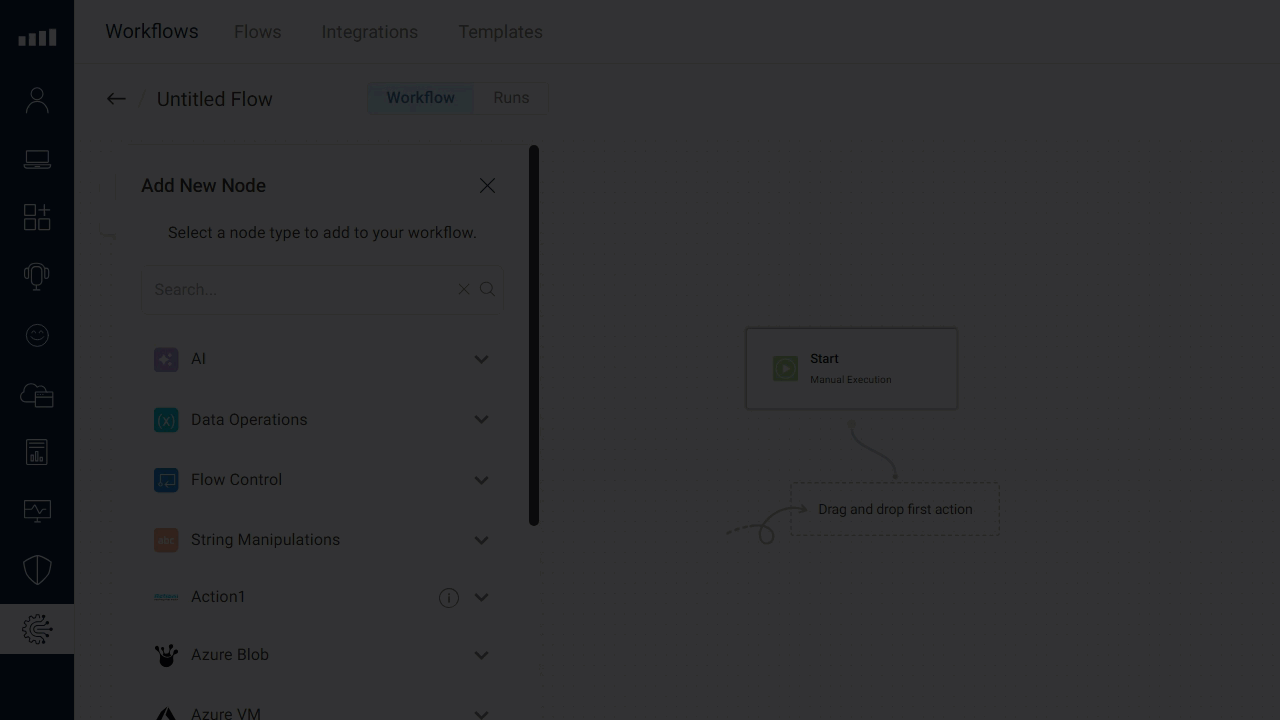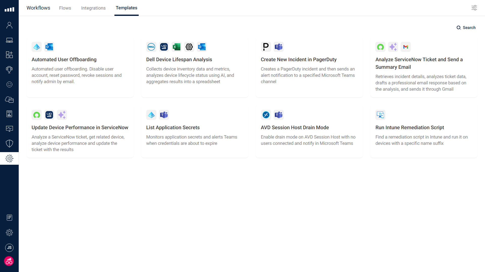 Workflow templates allow you to get value from ControlUp Workflows quicker than ever. Just select the Templates tab, select the template that aligns with your use case, select your specific integrations, and you are ready to run your new flows. Of course, you can further customize the new flow where needed.