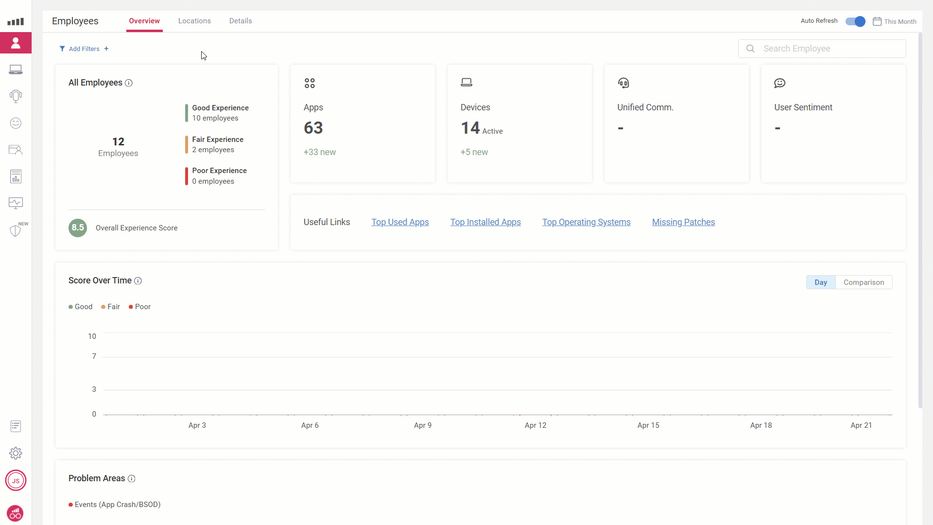 From this dashboard you can just follow the “breadcrumbs”, by either selecting a specific problem area such as “App Crashes” or by “following the red” all the way down to a specific user at a specific minute in time to understand what impacted their individual score.