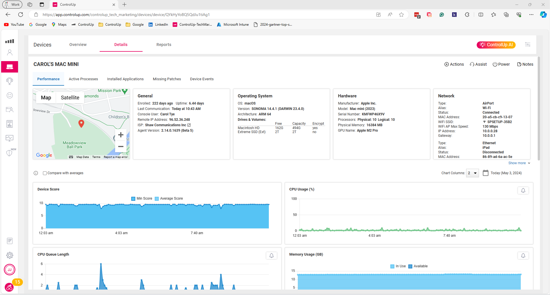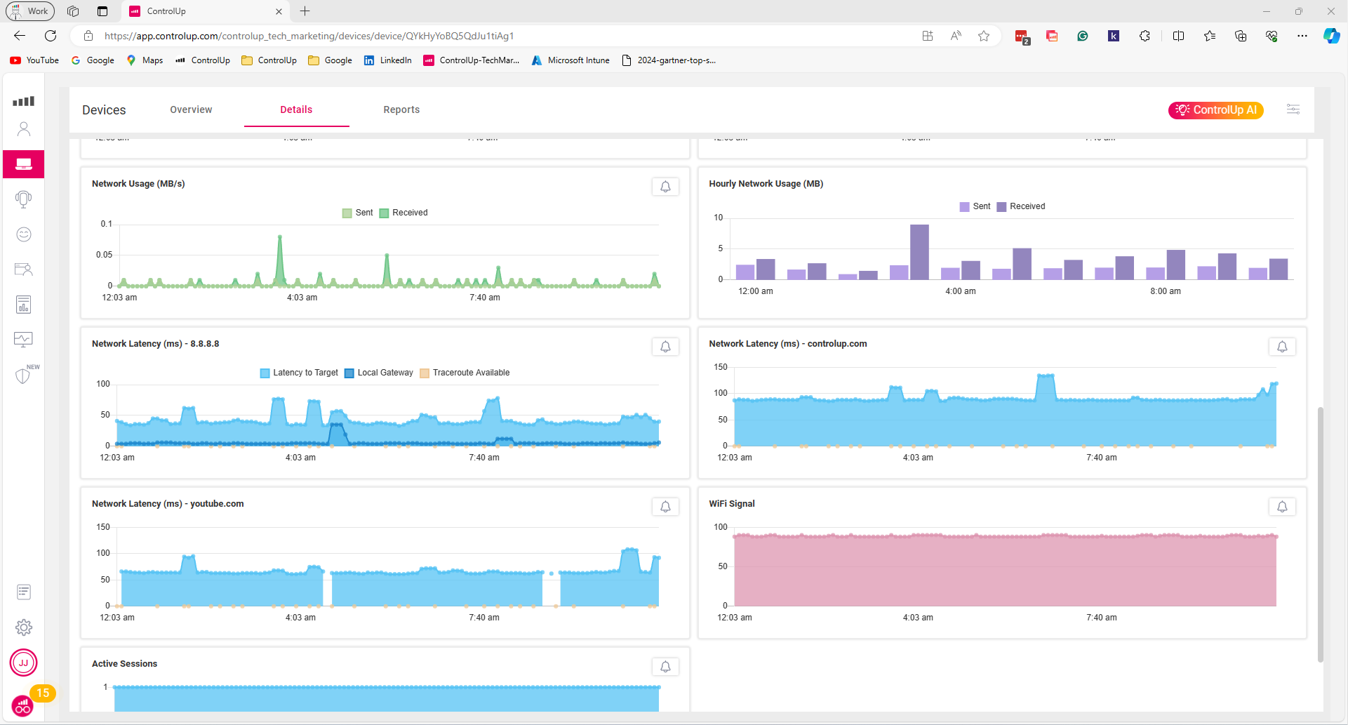 As shown below, ControlUp captures Network Usage, Latency, and Wi-Fi Signal strength.