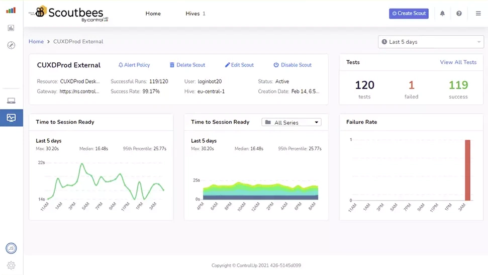 ControlUp’s synthetic monitoring of SaaS and Web applications alerts IT and employees when they have slowed down or are unavailable. ControlUp’s synthetic testing can be run from almost any location worldwide, even from a client’s endpoint devices.