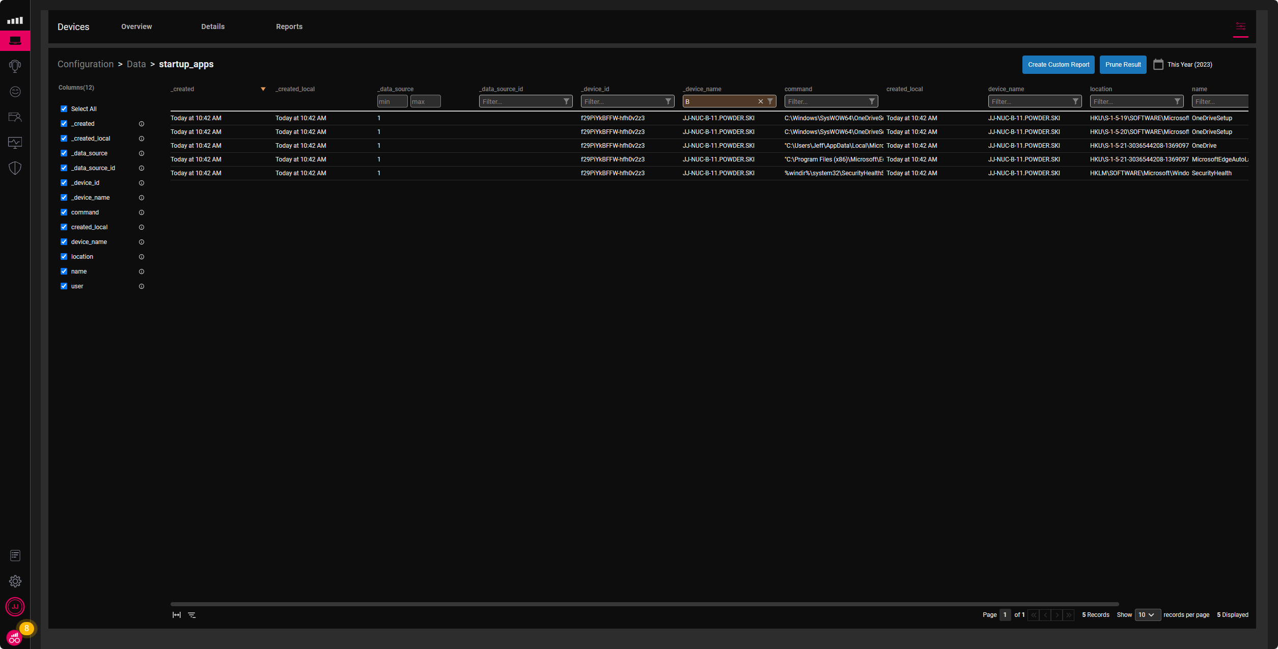 Once the above script is saved in the script library, it can be run simultaneously on one or many devices. In Figure Five, you can see the output of the above script in the Device Events for the computer called JJ-NUC-B-11. In the DESCRIPTION column, we can see the output of the startup applications.