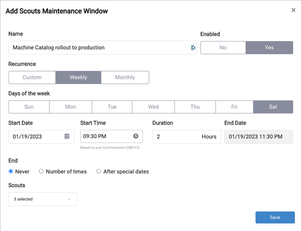 As you can see in the below screenshot, the scheduled maintenance windows are easy to create from the console:
