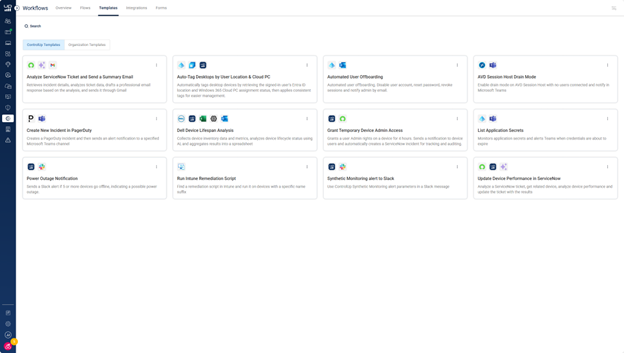 To speed adoption, ControlUp provides a library of prebuilt workflow templates covering common IT automation scenarios, including: