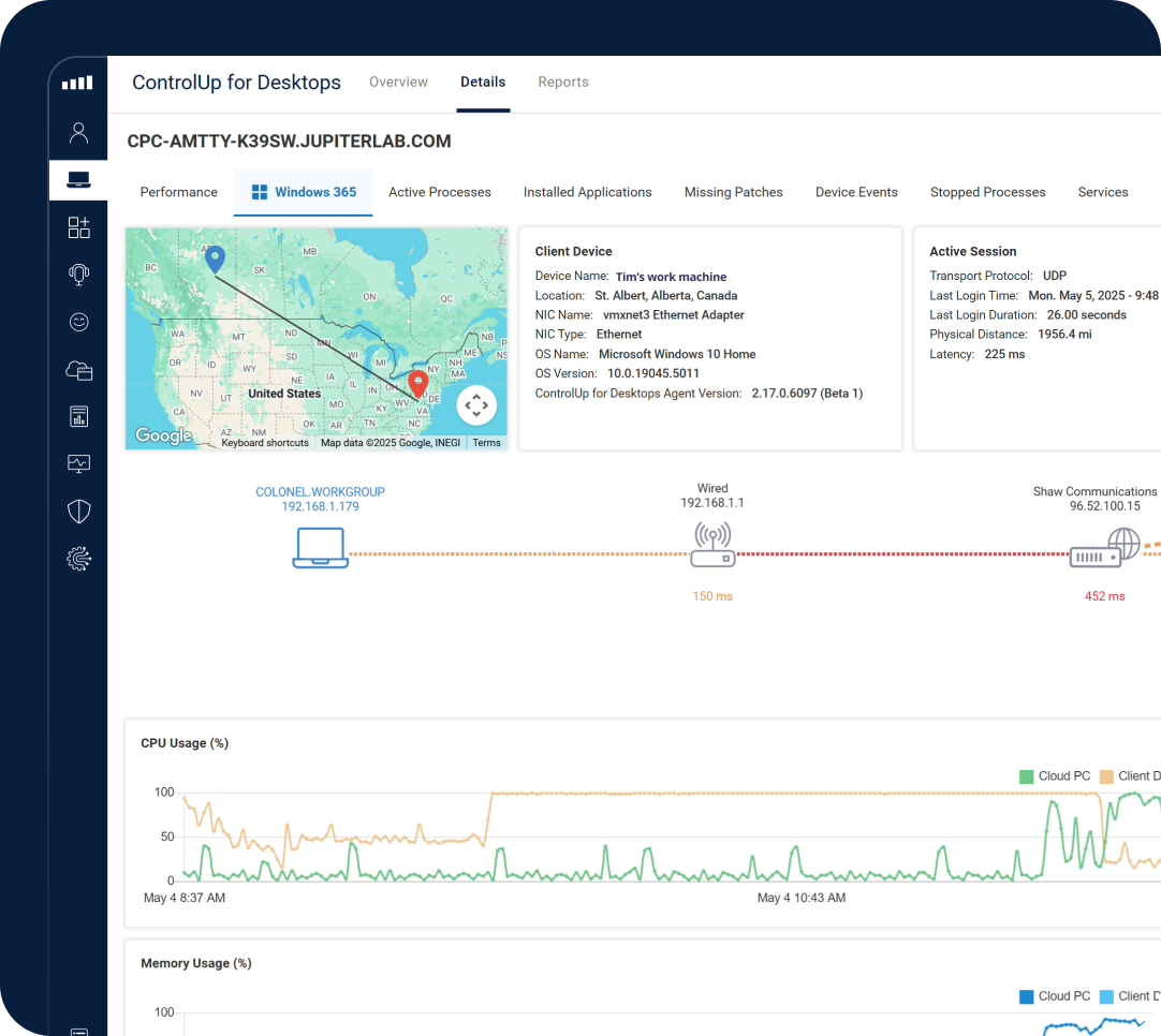 New Windows 365 Cloud PCs can integrate into your ControlUp organization for unified end user experience monitoring and management.